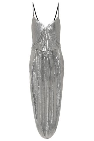 Want to feel the party vibes and feel comfy go for one of the sleekest new year’s eve outfits for cold weather with your favorite oversized sweater and pleated metallic skirt to feel the glam. Grap your strap heels and threw on some accessories like a shiny clutch and necklace.