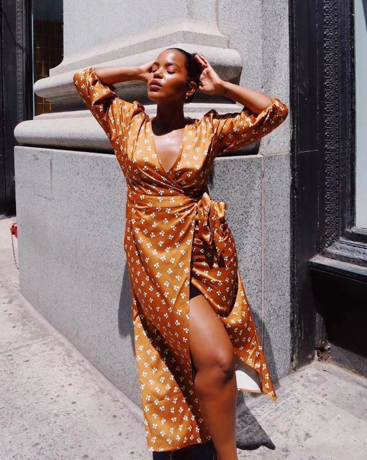 Tropical Print Dress – You might not be headed to an island any time soon, but wearing floral print on vacation is always acceptable! Try pairing this print with a slicked-back bun, statement jewelry, and no black strappy heels to elevate it for a night out!
