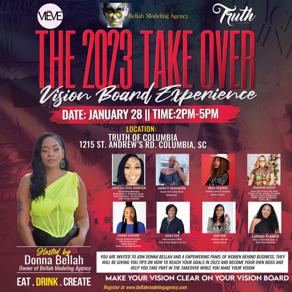 Bellah Modeling Agency’s Annual Vision Board Experience will be held on Saturday, January 28th, from 2-5 pm at Truth of Columbia. This is one of Bellah’s first events of the new fashion season, and you do not want to miss it! There will be influential speakers covering entrepreneurship, fashion, social media management, the fashion industry, and more! If you would like to be a part of this experience, head over to Eventbrite to get your tickets before they are all sold out!